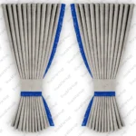 Κουρτίνες Παραθύρων Mercedes – Αλκαντάρα με Πέλος, Γκρι Παστέλ με Κρόσσι Μπλε 4cm