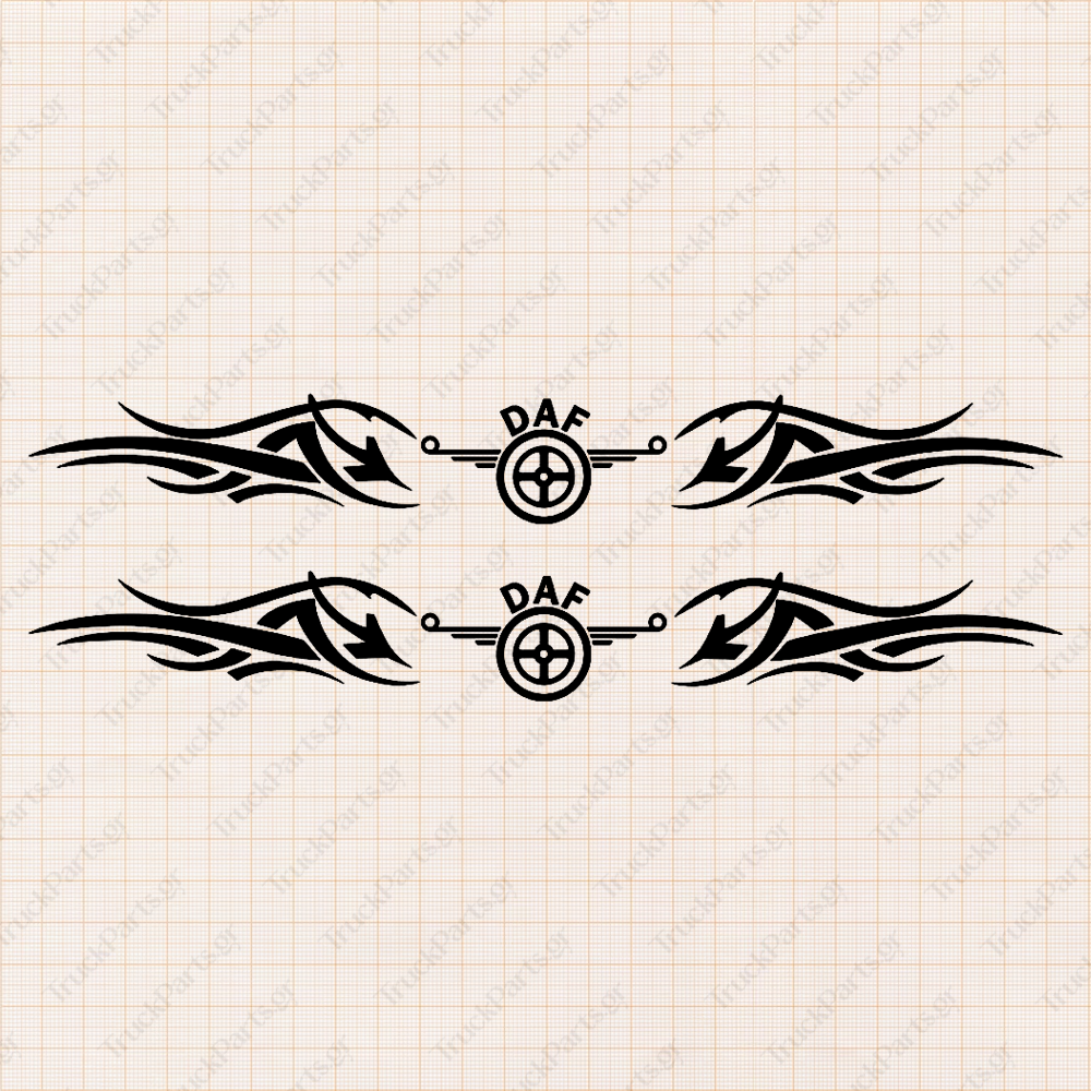 Αυτοκόλλητα για φορτηγά Daf από βινύλιο υψηλής ποιότητας, σχεδιασμένα για δυναμική εμφάνιση και μακροχρόνια αντοχή έως 8 έτη.