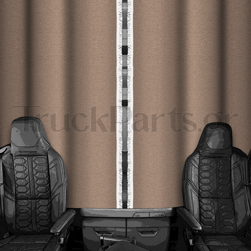 Κάθε Iveco Κουρτίνες Κρεβατιού – Σταθερό Βελουτέ, Καφέ Ανοιχτό με Κρόσι 4cm – Σχέδιο 3 κατασκευάζεται από διπλής όψης σταθερό βελουτέ, με ίδιο χρώμα και ίδια υφή και στις δύο πλευρές, ώστε να προσφέρει ομοιόμορφη εμφάνιση ανεξαρτήτως θέσης ή φωτισμού. Η σταθερή δομή του υφάσματος βοηθά την κουρτίνα να “κάθεται” σωστά μέσα στην καμπίνα, χωρίς να γυρίζει, να τσαλακώνει ή να χάνει τη φόρμα της με τον χρόνο.