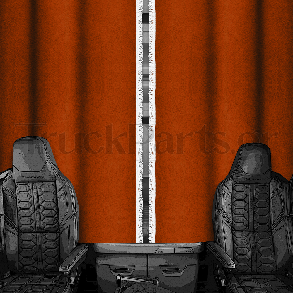 Κάθε Scania Κουρτίνες Κρεβατιού – Αλκαντάρα, Πορτοκαλί – Σχέδιο 3 κατασκευάζεται σύμφωνα με τις ακριβείς διαστάσεις του συγκεκριμένου μοντέλου φορτηγού, ώστε να εφαρμόζει σωστά χωρίς συμβιβασμούς. Με αυτόν τον τρόπο αποφεύγεται η καθολική (universal) διάσταση και εξασφαλίζεται σωστή κάλυψη σε κάθε σημείο.