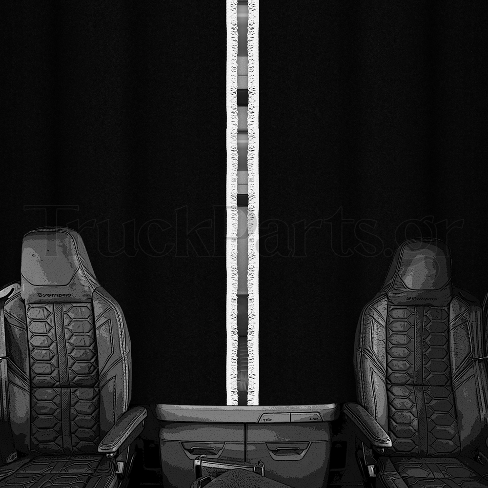 Το υλικό πέφτει ομαλά, ακολουθεί τις γραμμές της καμπίνας και διατηρεί το σχήμα του στην καθημερινή χρήση, ακόμη και σε συνθήκες συνεχούς ανοίγματος και κλεισίματος. Παράλληλα, παραμένει φρέσκο και καλαίσθητο μετά από μεγάλα ταξίδια, συμβάλλοντας σε μια καθαρή, τακτοποιημένη και συντονισμένη εικόνα στο εσωτερικό του φορτηγού.