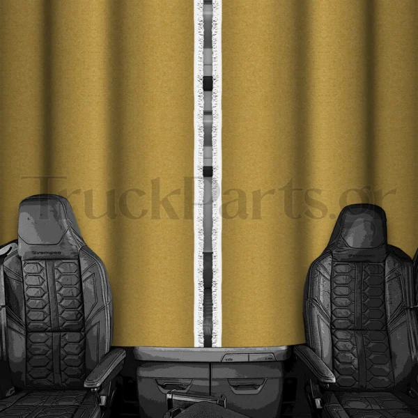 Iveco Κουρτίνες Κρεβατιού – Σταθερό Βελουτέ, Μουσταρδί με Κρόσι 4cm – Σχέδιο 3